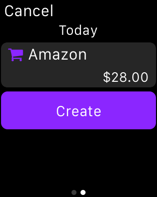 Once the amount is entered, swipe the screen to the left to show the validation screen and touch the "Create" button.